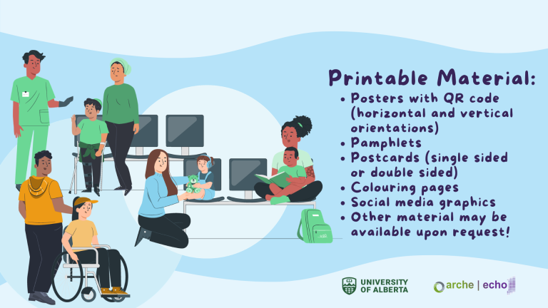 We would love for you to share our resources with others. We have printable materials including posters with QR codes, pamphlets, postcards, social media graphics, and colouring pages. Download links are available below.